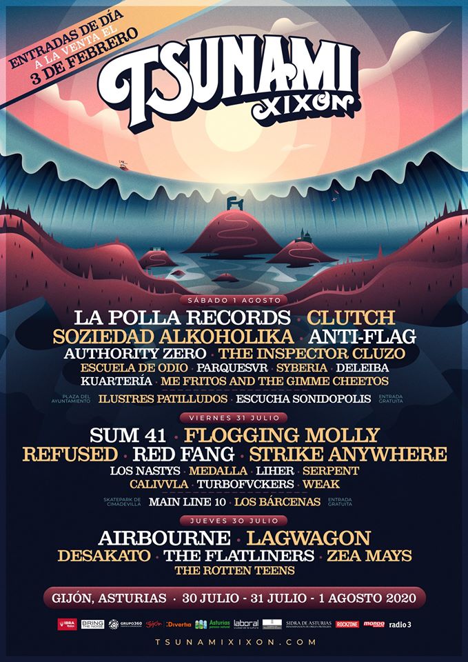 Y por fin tenemos el cartel completo del Tsunami Xixón 2020. Por primera vez serán 3 días llenos de fiesta y bandazas, y además de los abonos de los 3 días, pondremos entradas de día a la venta el próximo lunes 3 de febrero a las 11:00 de la mañana a un precio de sólo 45 € + gastos. ¿Te vienes a Gijón?
